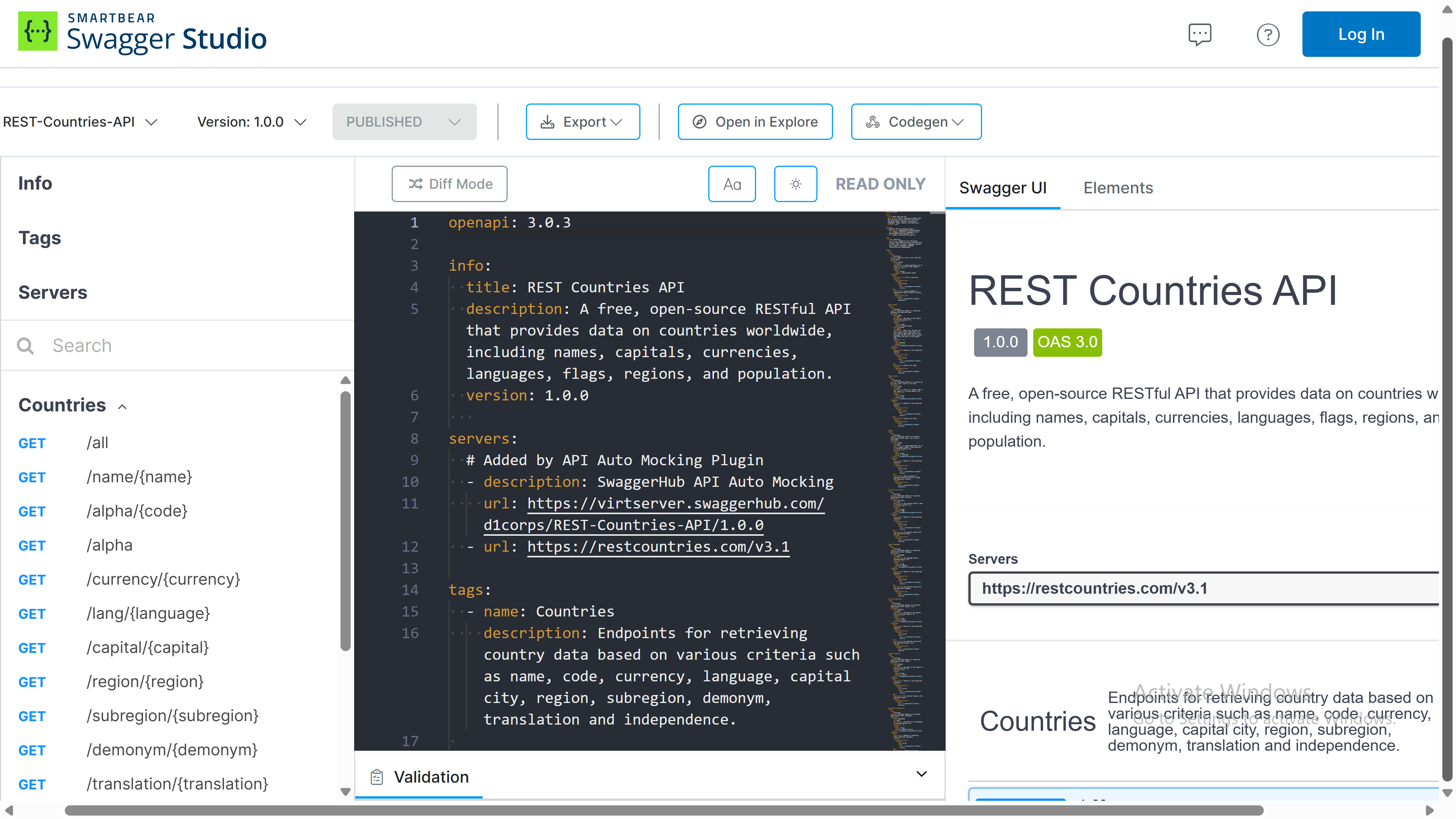 An OpenAPI (Swagger)-based API documentation project for the REST Countries API, providing a structured, interactive reference with clearly defined endpoints, parameters, and response schemas to help developers understand and integrate country data efficiently.